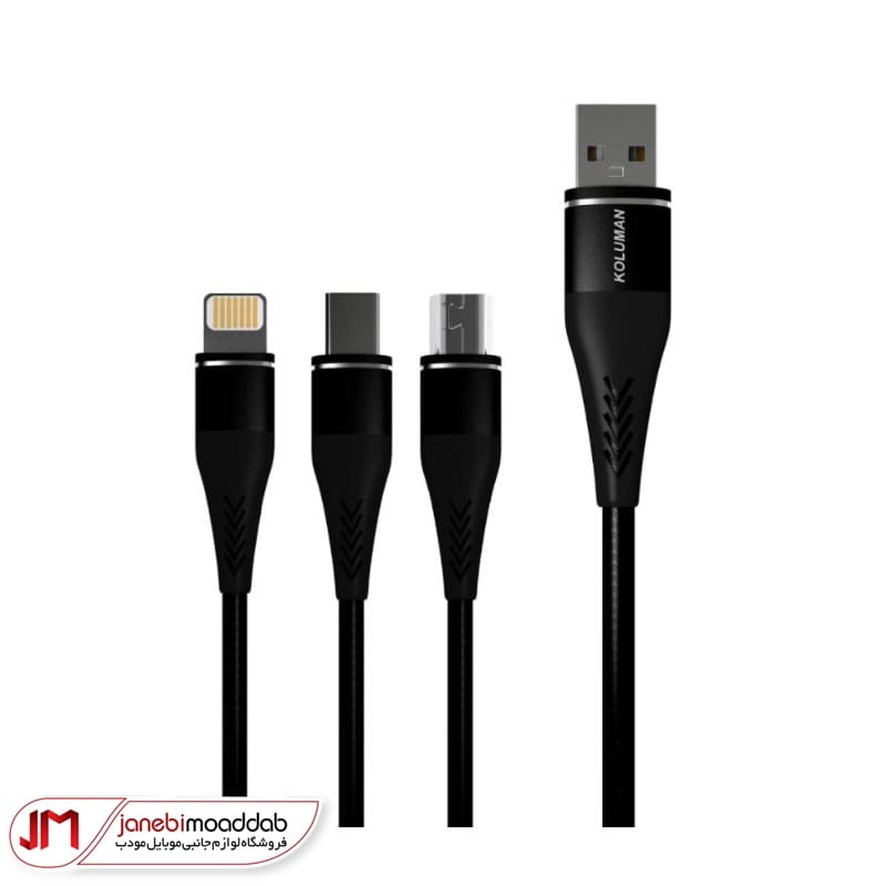 کابل کلومن مدل KD-24 دارای سه کانکتور می باشد و مناسب افرادی است که از گوشی های مختلفی استفاده می کنند که هر کدام از آنها دارای کانکتور مخصوص به خود هستند. با داشتن این کابل دیگر دچار ازدجام کابل ها نمی شوید. کابل کلومن KD-24 دارای روکش برزنتی است و در برابر پاره شدن و گره خوردن مقاوم است. طول این کابل 1.2 متر است و برای انواع دستگاه های اندروید، تایپ سی و لایتنینگ مناسب است. از کابل کلومن KD-24 می توانید برای شارژ و انتقال دیتا با سرعت بالا استفاده کنید.