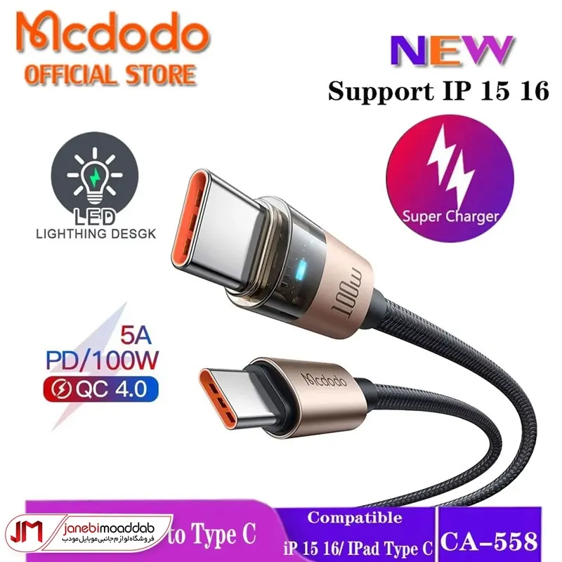کابل دو سر تایپ مک دودو مدل MC-558 فست شارژ 100 وات 5A