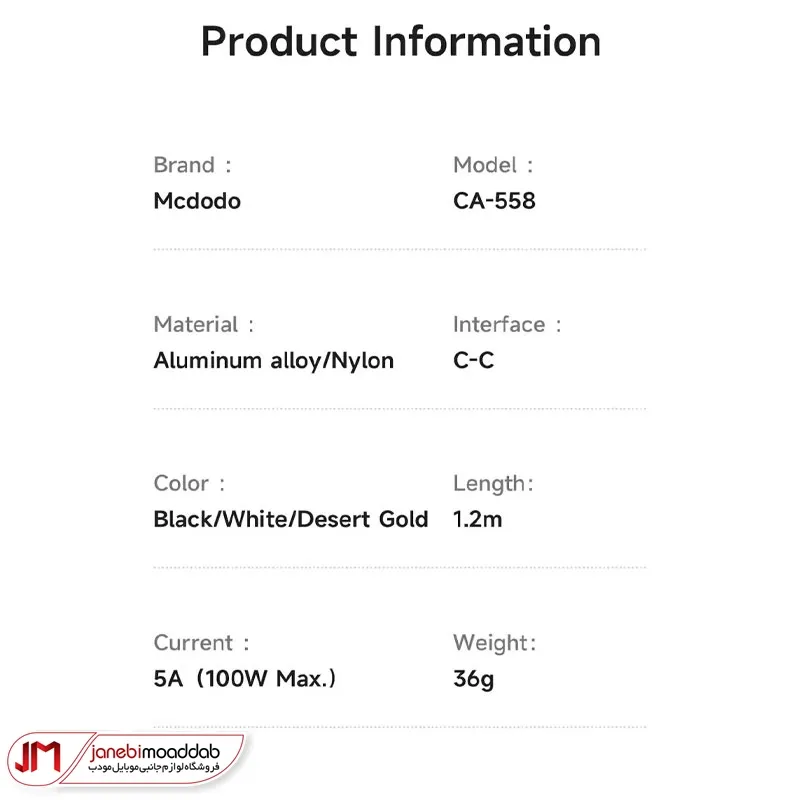 • کابل تایپ سی به تایپ سی مک دودو CA-558